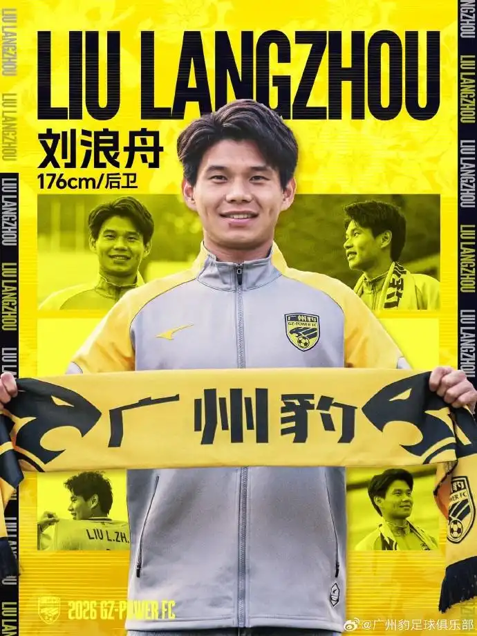 2月14日,广东广州豹足球俱乐部官方宣布,球员刘浪舟加盟。 公告写道 今天向大家介绍广州豹2026赛季的第七位新援。 经与球员本人协商并达成一致,年轻实力派后卫刘浪舟正式加盟广州豹足球俱乐部。 现年23岁的刘浪舟,200