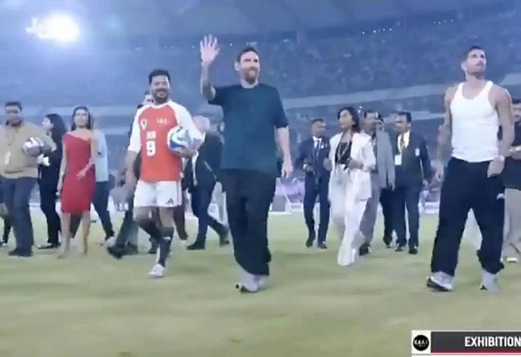 梅西离开后,球迷直接冲下看台,对球场的设施进行了破坏,现场出现巨大骚乱。随后,梅西乘坐飞机离开第一站,并顺利抵达第二站特伦甘纳邦的首府海得拉巴。和第一站相比,第二站的安保、流程以及互动安排都合理了许多。