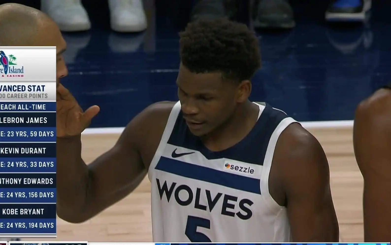 据统计,24岁156天的爱德华兹超越科比-布莱恩特,成为NBA历史第三年轻的万分先生,仅次于勒布朗-詹姆斯和凯文-杜兰特。