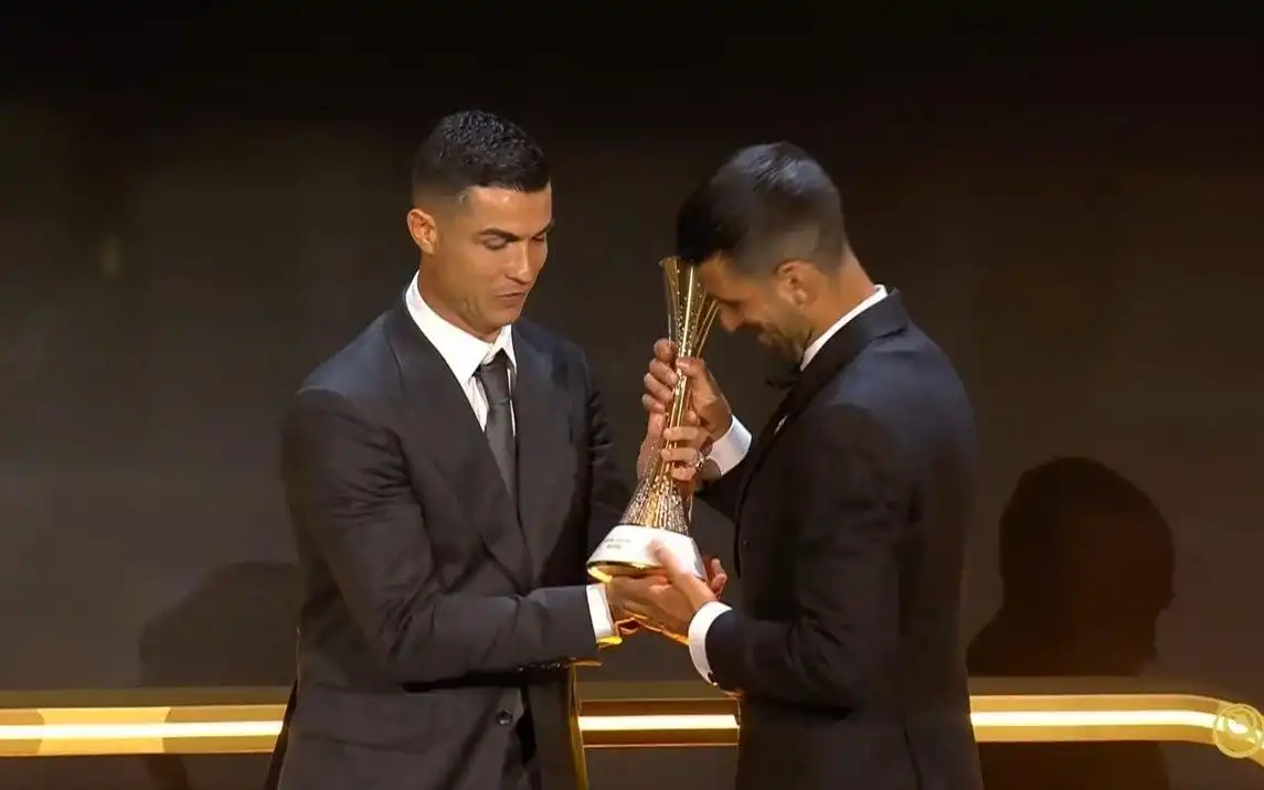 最终,在本次颁奖典礼上获得最佳中东球员奖的C罗为德约科维奇颁发了这一奖项。