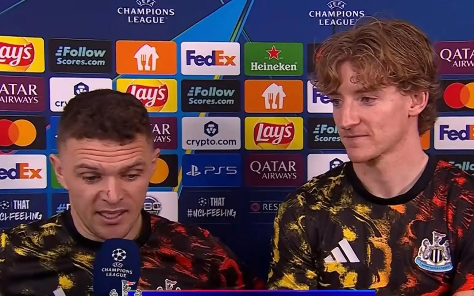 在客场6-1战胜卡拉巴赫的赛后,纽卡后卫特里皮尔和本场比赛上演大四喜的戈登接受了CBS体育的采访。在采访中,他们谈到了因抢罚点球发生争执一事。