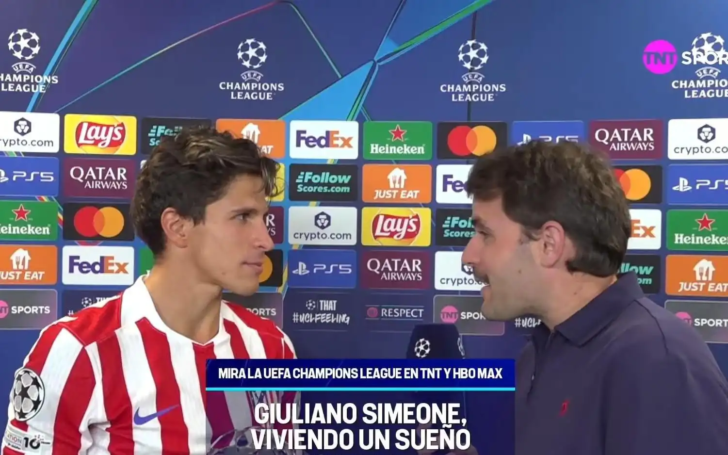 本赛季欧冠联赛阶段第4轮,马竞主场3-1战胜圣吉罗斯联合。马竞球员朱利亚诺-西蒙尼接受了TNT体育的赛后采访。