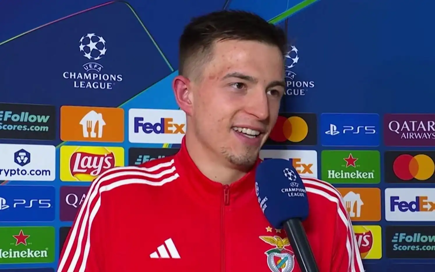 欧冠联赛阶段第8轮,本菲卡主场4-2战胜皇马,最后时刻攻入一球帮助球队晋级欧冠淘汰附加赛的本菲卡门将特鲁宾赛后接受了TNT体育的采访。