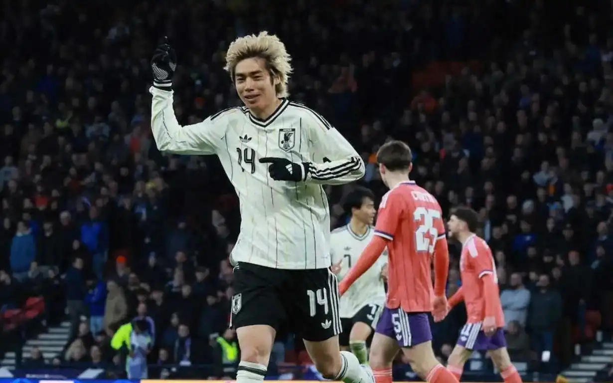 正在英国拉练的日本队于当地时间3月28日进行的一场国际友谊赛中,以1-0战胜苏格兰队。替补登场的33岁老将伊东纯也(亨克)在下半场第39分钟打入关键的制胜进球。