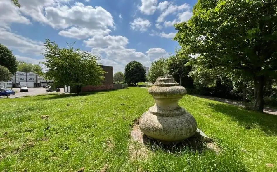 在那里,距离新温布利球场一英里远的草地上,静静地矗立着曾经装饰东塔顶部的旗杆座。