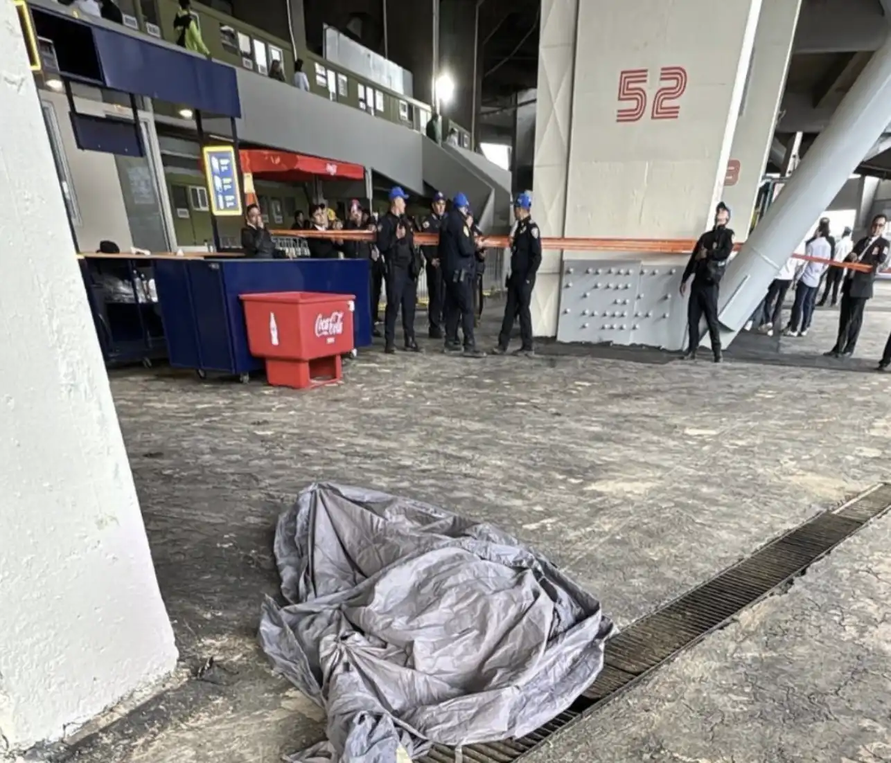 今日,球场内涌入大量观众。在贵宾包厢区,一位男球迷喝醉了酒。随后,他翻过二楼的护墙,打算跳到一楼。但是,他没有控制好方向,直接摔到了地面上,当场身亡。尽管医护人员第一时间赶到,但无力回天。