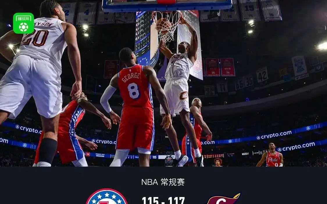北京时间1月17日NBA 常规赛,费城76人对阵克利夫兰骑士。首节双方紧咬比分,随后两节比赛76人保持7分上下领先,半场76人62-55骑士,三节结束76人仍领先7分,末节双方相继打出高潮,比赛最后3分钟76人仍领先7分,但随后骑士泰森领衔反扑反超比分,最后关键时刻骑士莫布利准绝杀,最终骑士117-115险胜76人。