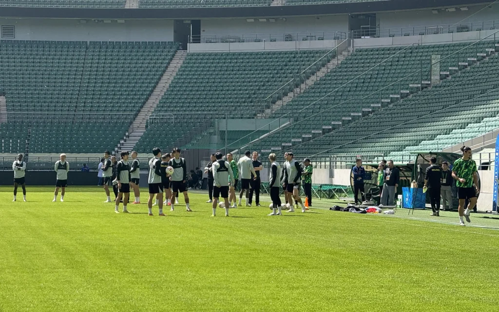 国安在工体进行赛前训练,达万、王刚、茹子楠等随队参加