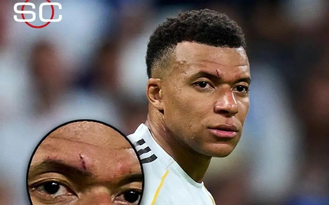 ESPN晒姆巴佩伤口图,眼眶上方深深的伤口清晰可见