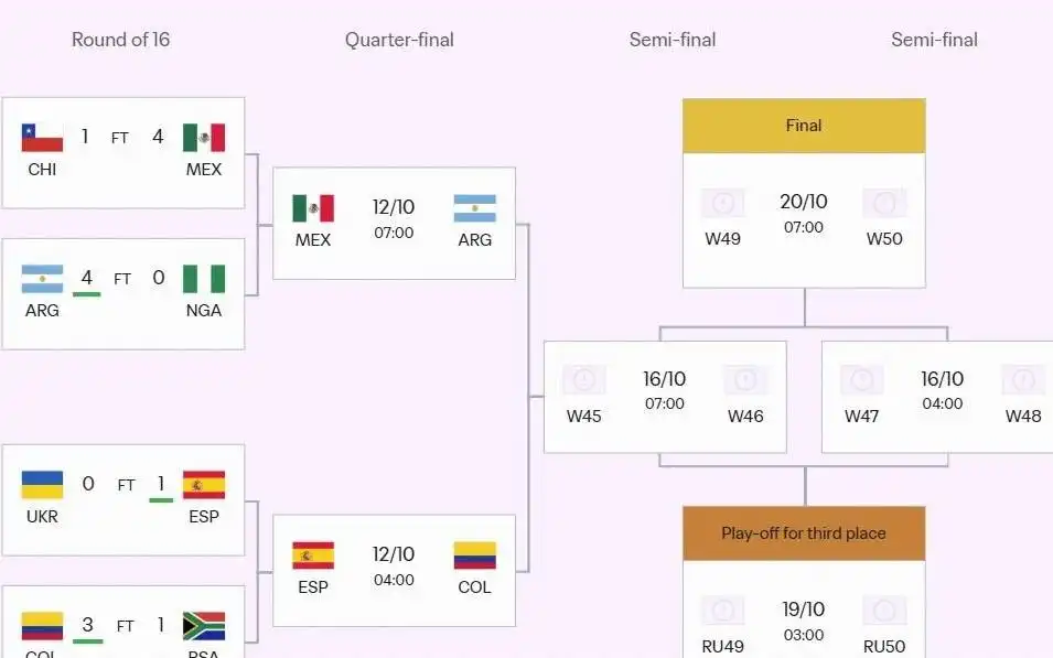 北京时间10月10日上午七点,U20世界杯结束了最后一场八分之一决赛。八强对阵正式出炉,墨西哥将对阵阿根廷,西班牙迎战哥伦比亚,美国将与摩洛哥较量,挪威将挑战法国。
